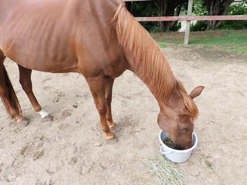 ふだんあんずが食べている牧草とは違う味覚なので、とてもおいしそうに食べていました!